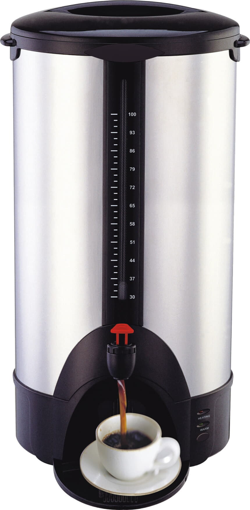Кипятильник-кофеварочная машина (перколятор) настольный, автономный, резервуар емкостью 15 л (100 чашек) с краном для розлива, материал корпуса - нерж.сталь/черная пластмасса
