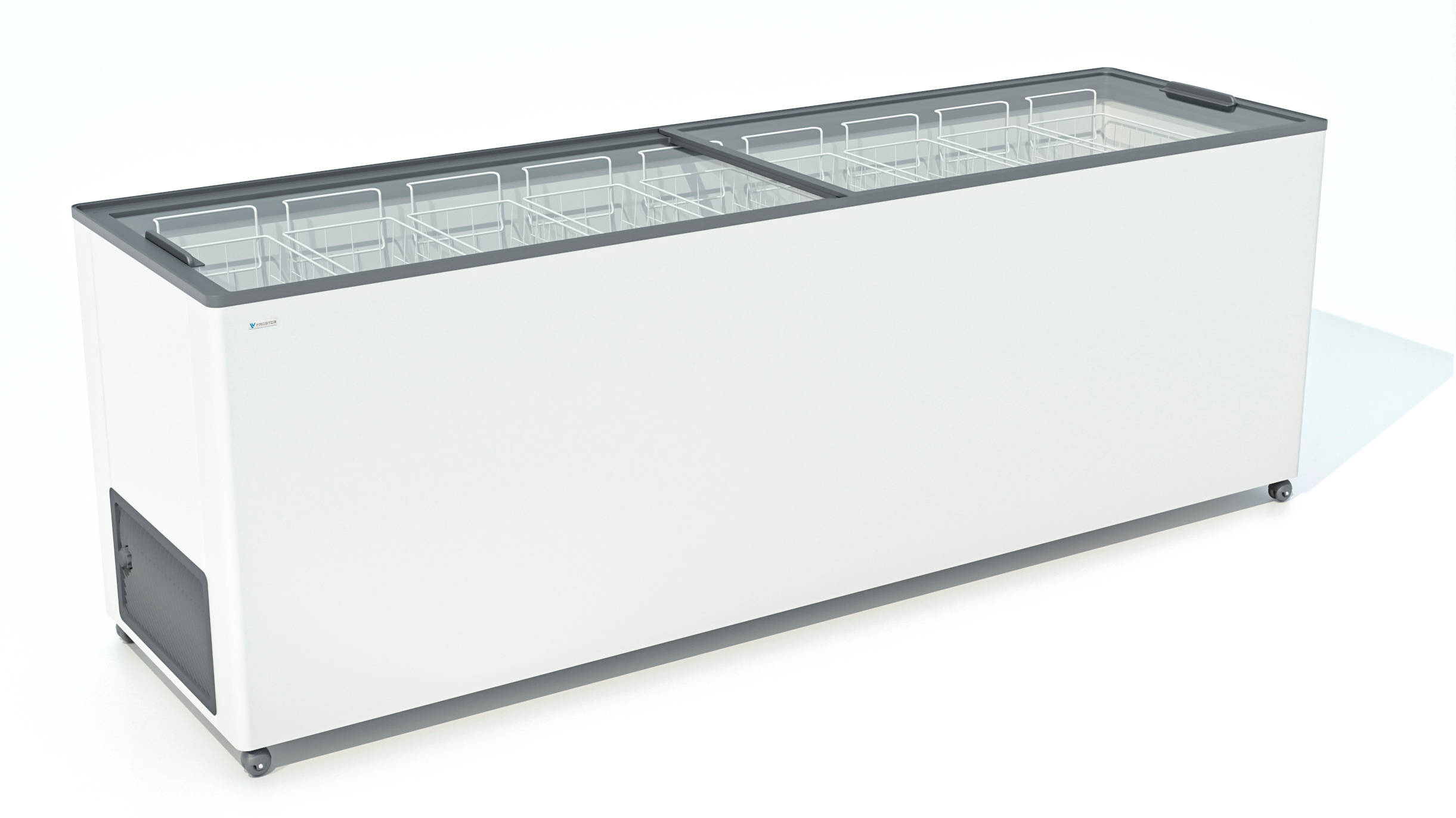 Ларь оснащен прямыми стеклянными шторками, которые обеспечивают удобный доступ к содержимому и позволяют легко просматривать продукты без необходимости открывать крышку. Габариты устройства составляют 2000х600х840 см, что делает его подходящим для использования в различных коммерческих и бытовых условиях.