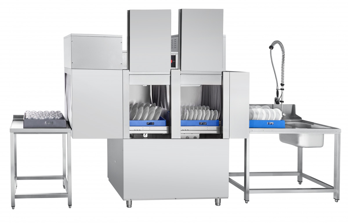 - Производительность: 1998 тарелок или 111 кассет в час, что позволяет быстро и качественно обрабатывать большие объемы посуды.