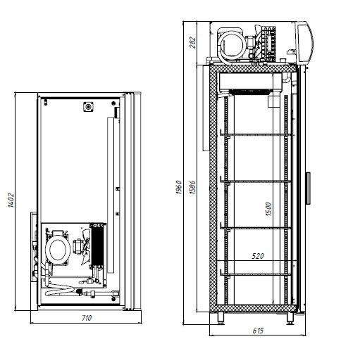 - Габариты: 1402 мм в ширину, 710 мм в глубину и 1960 мм в высоту