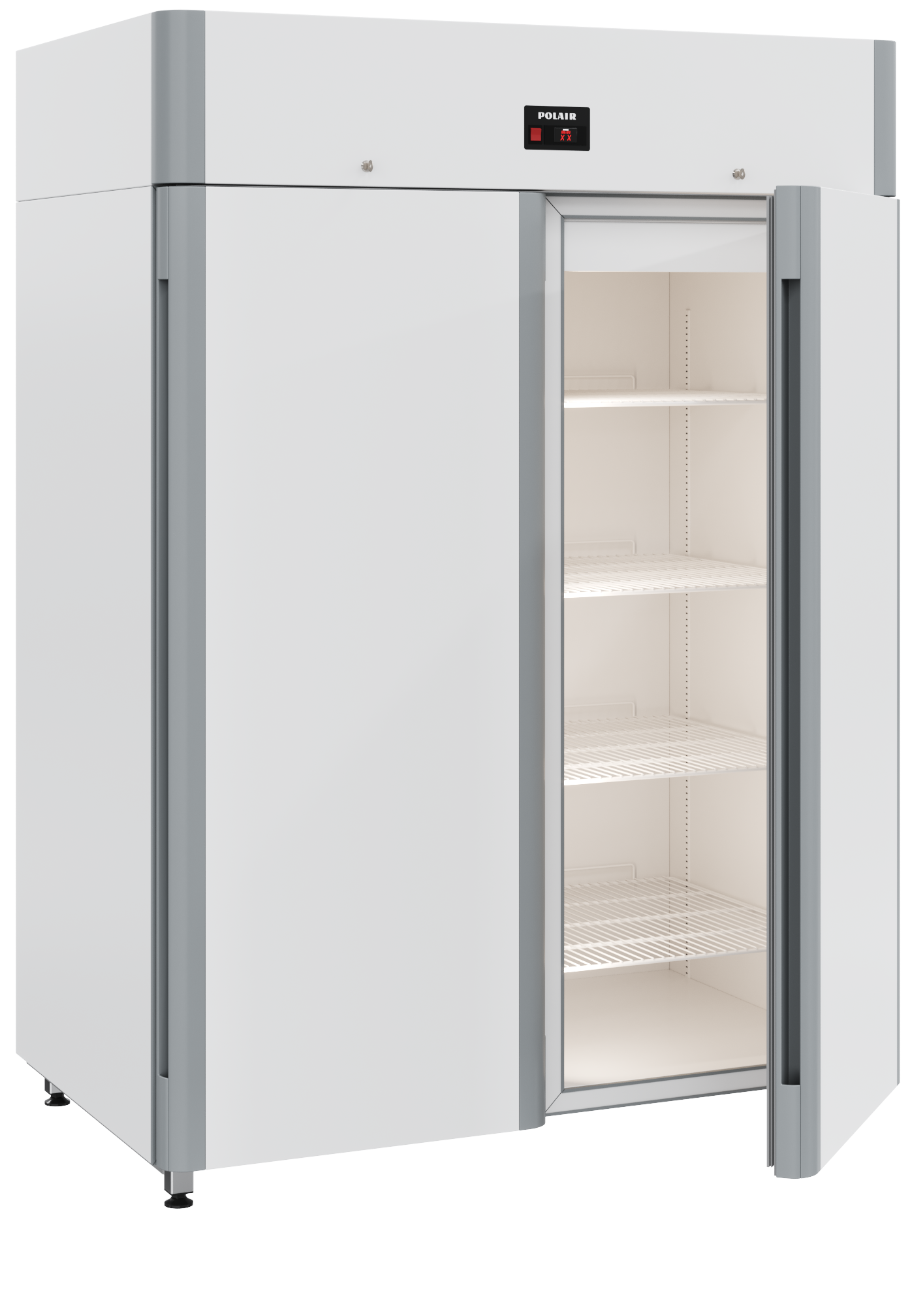 Холодильный шкаф Polair CM 110 Sm выделяется современным дизайном и использованием алюминиевых профилей, которые не только придают ему эстетическую привлекательность, но и усиливают общую конструкцию. В шкафу отсутствуют выступающие элементы, а ручки интегрированы в профиль дверей, что обеспечивает дополнительную эргономичность.