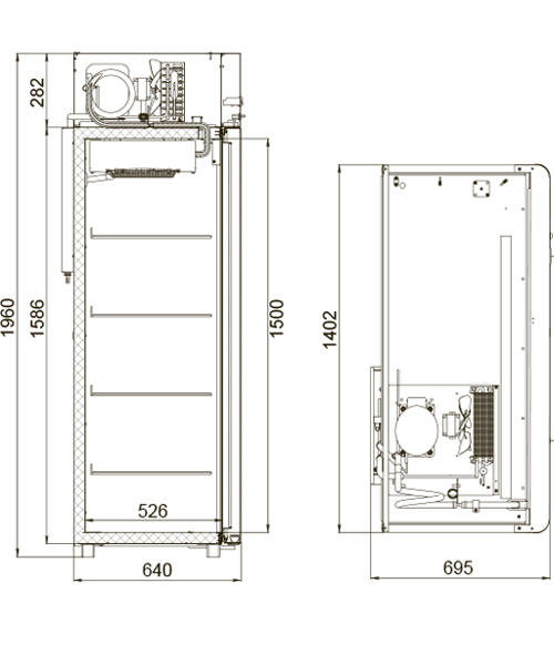 Корпус и двери выполнены из оцинкованной стали с полимерным покрытием, что обеспечивает долговечность и устойчивость к внешним воздействиям. Холодильная система X-Cool гарантирует эффективное охлаждение даже при высоких температурах окружающей среды, а X-Strong обеспечивает надежность и прочность конструкции, что делает шкаф идеальным для интенсивного использования.