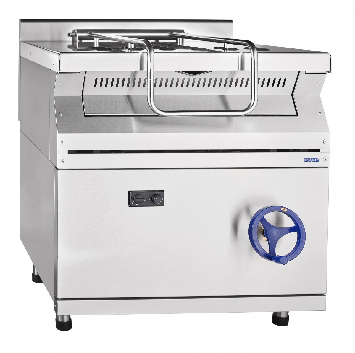 Конструкция сковороды включает механизм подъема и опускания чаши, что значительно упрощает процесс очистки и обслуживания. Крышка, которая фиксируется в любом положении, помогает сохранить тепло и предотвращает его потерю во время готовки. Боковые и задние панели выполнены из окрашенного оцинкованного металла, что обеспечивает долговечность и надежность изделия.