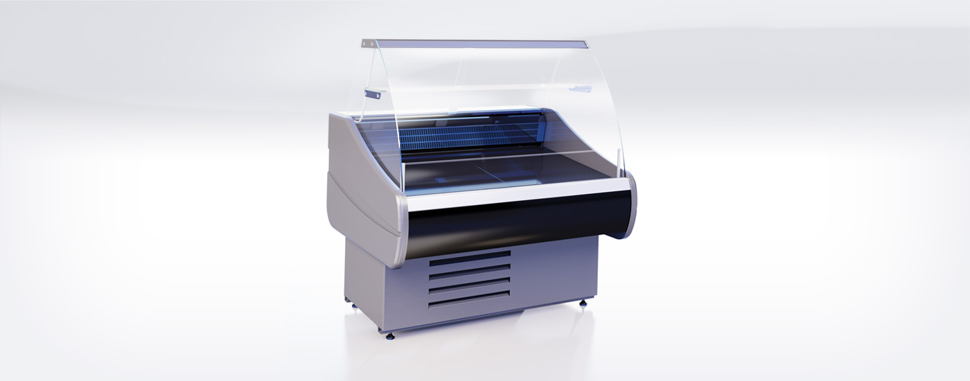 Витрина также включает вместительную охлаждаемую камеру для хранения запасов, а панели и корпус имеют пенополиуретановую теплоизоляцию для повышения энергоэффективности. Изогнутое фронтальное стекло придает витрине стильный вид, а светодиодная подсветка выделяет товары на поверхности экспозиции.